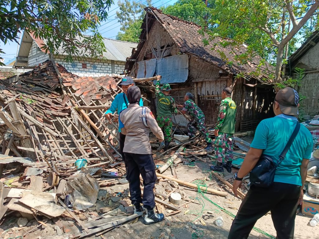 INDOBANGKIT.COM BOJONEGORO – Polres Bojonegoro Polda Jatim melalui Polsek Baureno bersama Koramil, dan warga Desa Tawang, Kecamatan Baureno, bergotong royong bedah rumah milik Sumarsih, seorang lansia berusia 64 tahun yang hidup sebatangkara.