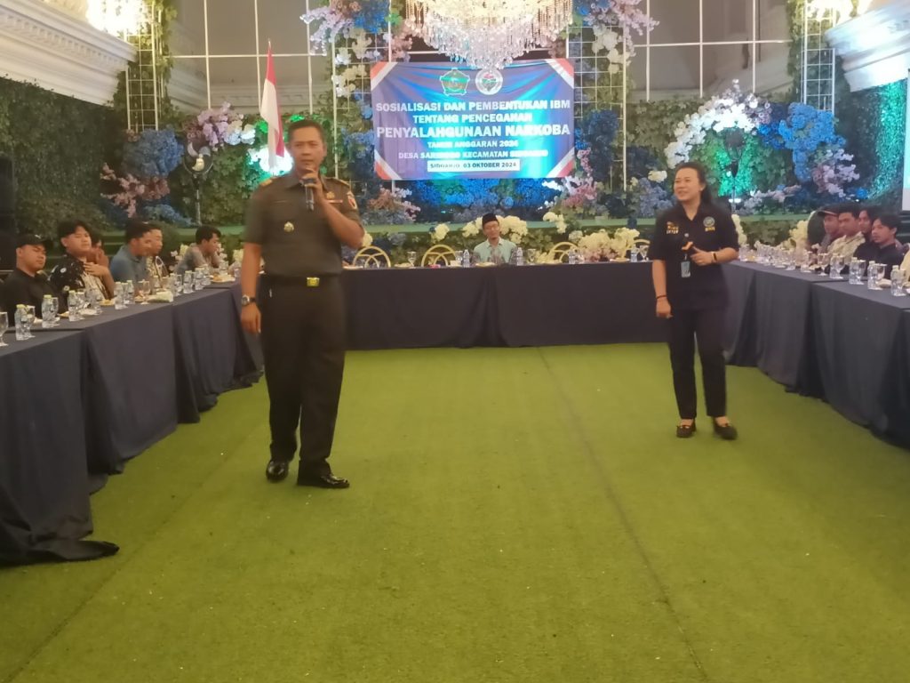 INDOBANGKIT.COM Sidoarjo.didepan puluhan anggota karang taruna Desa Sarirogo kecamatan Sidoarjo Kapten Cke Kamsuri Danramil 0816/01 Sidoarjo bersama dengan BNNK Sidoarjo serta Perangkat desa Sarirogo melaksanakan Sosialisasi Pencegahan Pemberantasan Penyalahgunaan dan Peredaran Gelap Narkoba (P4GN) kepada masyarakat Desa Sarirogo ,Senin ( 7/10/24).