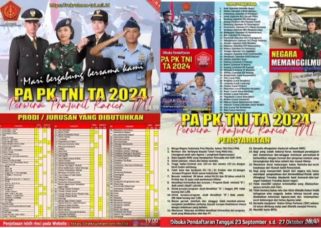 “Para calon pendaftar, bisa mengunjungi situs/website yang sudah disediakan oleh Mabes TNI. Itu bisa dilihat di https://rekrutmen-tni.mil.id/ dan mengisi formular pendaftaran,” jelasnya.