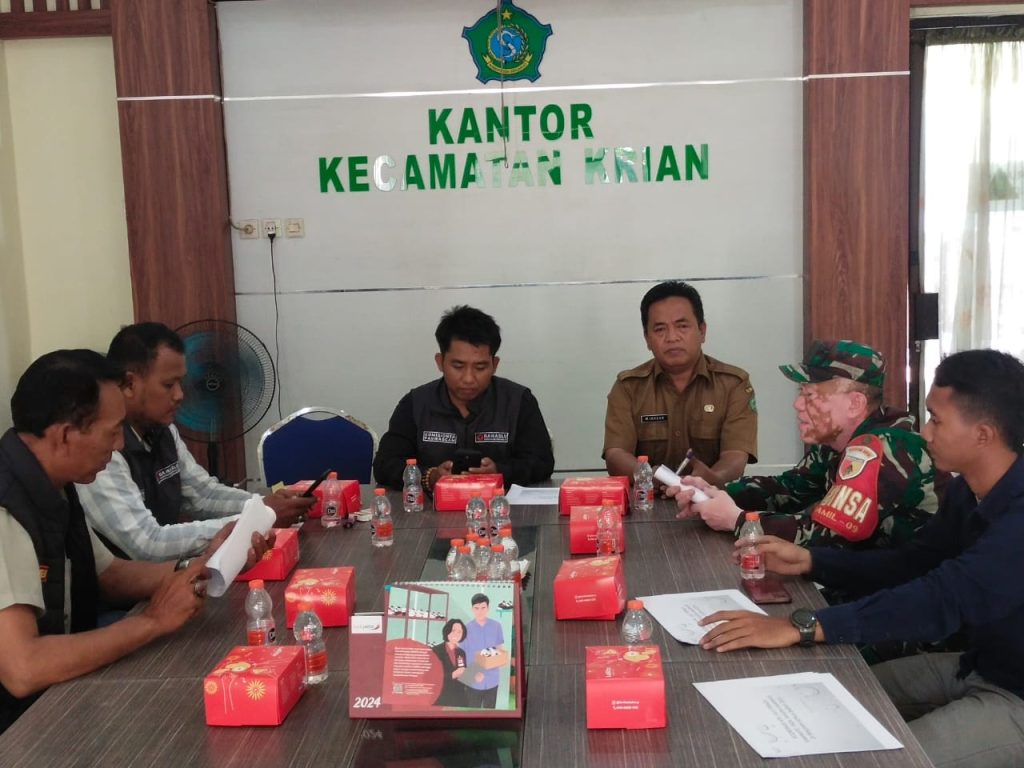 Rapat dihadiri oleh berbagai perwakilan dari instansi terkait, antara lain Sekretaris Camat (Sekcam) Krian, Bapak Ikhsan, yang hadir mewakili Camat Krian, Kapolsek Krian yang diwakili Iptu I. Ketut, serta Babinsa Serma Muttakim yang mewakili TNI. Turut hadir pula Aiptu Anang M. dari Polsek Krian, Ketua Panwascam Krian, Imam Hambali, serta anggota Panwascam, Fabio Rosandy.