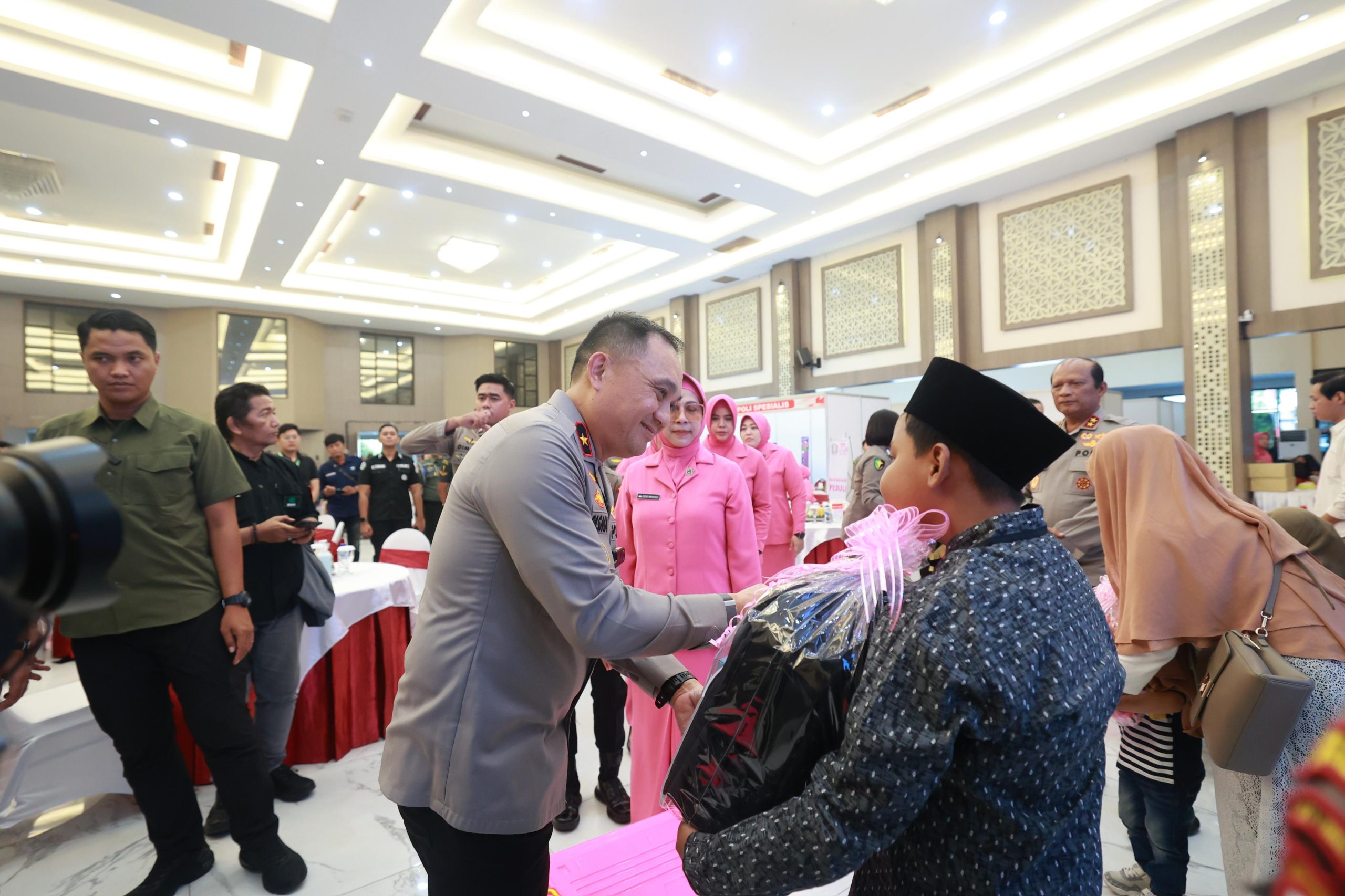 Bantuan ini diserahkan langsung dalam kegiatan Bhaktikes yang dipusatkan di Gedung Mahameru Mapolda Jatim dan tersebar di 9 Rumah Sakit Bhayangkara serta 45 Fasilitas Kesehatan Tingkat Pertama (FKTP) di seluruh jajaran Polda Jawa Timur, Senin (16/6).
