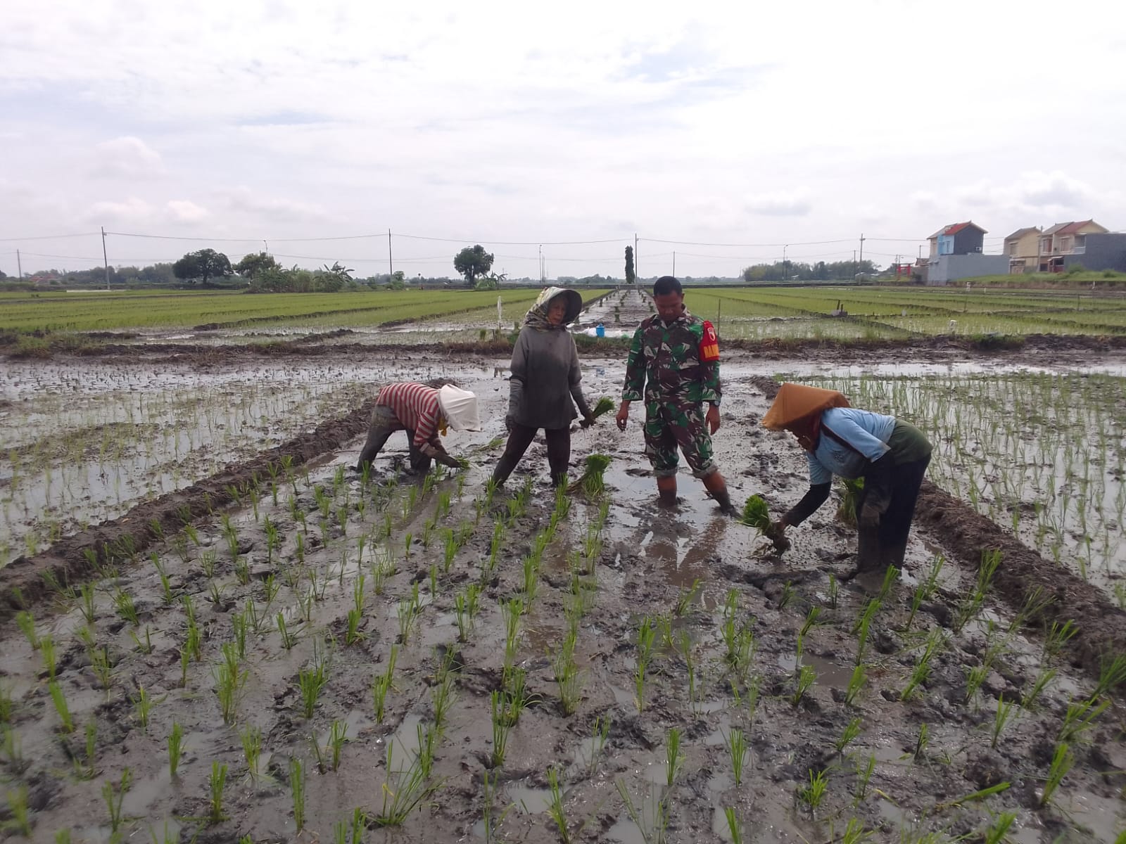 Indobangkit.com Sidoarjo, 17 Juni 2025 — Wujud nyata kepedulian TNI terhadap ketahanan pangan kembali terlihat di persawahan Desa Ngaresrejo, Kecamatan Sukodono, Kabupaten Sidoarjo. Babinsa Koramil 0816/15 Sukodono, Koptu Agus Rozi, hadir langsung mendampingi para petani dalam kegiatan tanam padi di lahan pertanian seluas 2,5 hektare milik Bapak Khasan, anggota kelompok tani binaan Bapak Bambang.