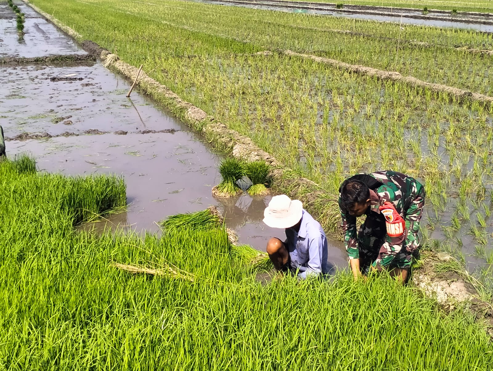 Indobangkit.com Sidoarjo, 23 Juni 2025 – Komitmen TNI dalam mendukung ketahanan pangan nasional terus dibuktikan melalui pendampingan langsung kepada para petani di lapangan. Hal inilah yang dilakukan oleh Babinsa Kelurahan Sekardangan, Koramil 0816/01 Sidoarjo Kota, Serda Suprianto, yang turun langsung mendampingi petani dalam merawat tanaman padi di wilayah binaannya.