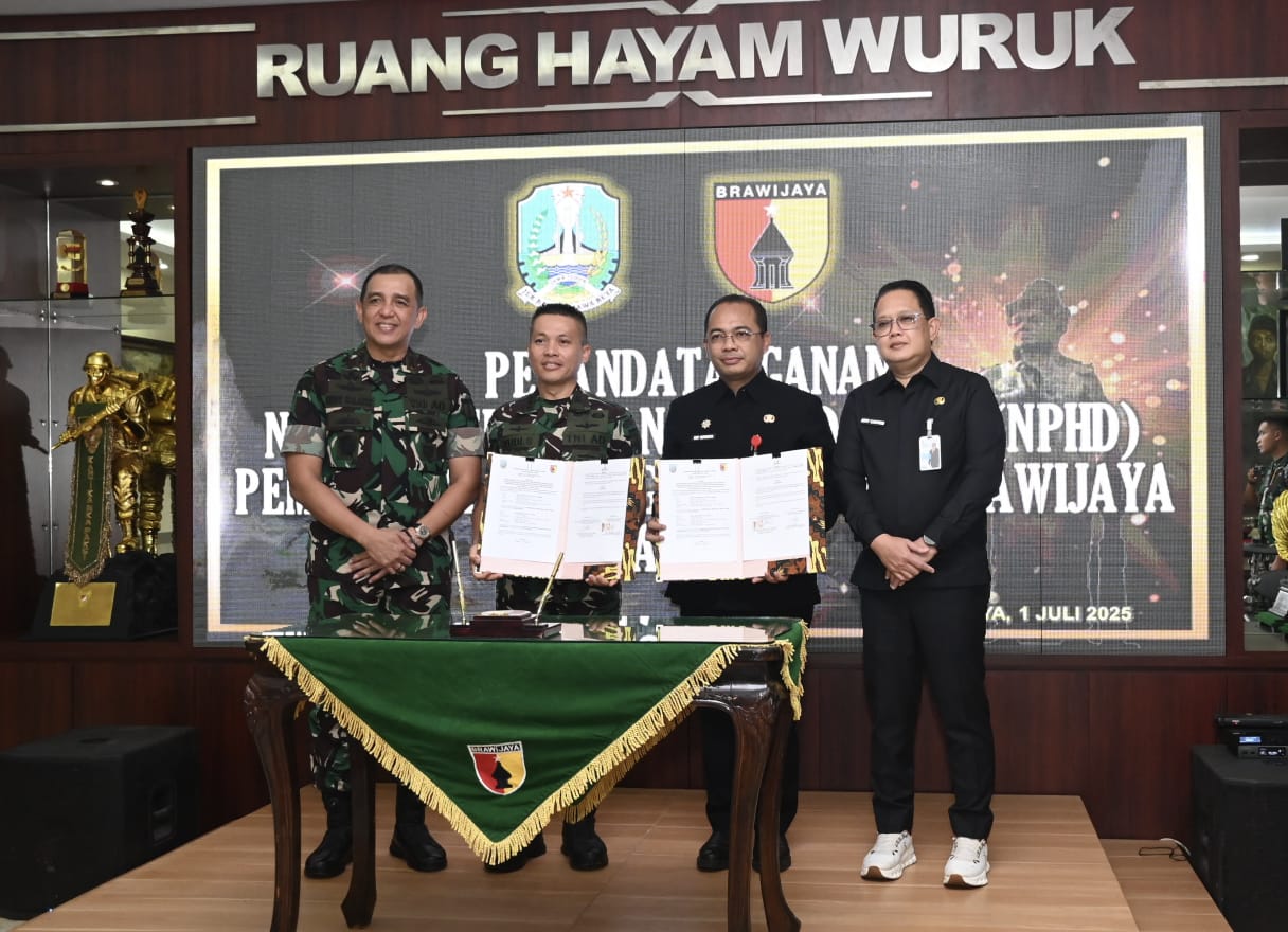 Kerjasama itu ditandai dengan adanya Naskah Perjanjian Hibah Daerah (NPHD) yang ditandatangani oleh Asrendam V/Brawijaya, Kolonel Kav Yudi Suryatin dan disaksikan langsung oleh Pangdam V/Brawijaya, Mayjen TNI Rudy Saladin, M.A, beserta PJU di lingkungan Kodam, sekaligus Sekda Pemprov Jatim, Adhy Karyono di Ruang Hayam Wuruk Makodam. Selasa (01/07/2025).