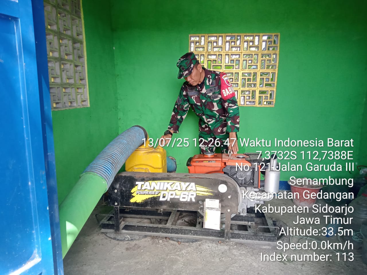 Indobangkit.com Sidoarjo, Minggu, 13 Juli 2025 — Dalam rangka mendukung ketahanan pangan nasional dan memastikan kesiapan sarana pendukung pertanian, Babinsa Koramil 0816/17 Gedangan, Serka Kisunari, melakukan pengecekan fisik terhadap unit pompa Irigasi Pompa (Irpom) yang tersebar di empat desa wilayah Kecamatan Gedangan. Kegiatan ini sekaligus menjadi bentuk pendampingan TNI AD kepada petani dalam menjaga keamanan dan keberlangsungan produksi pertanian.