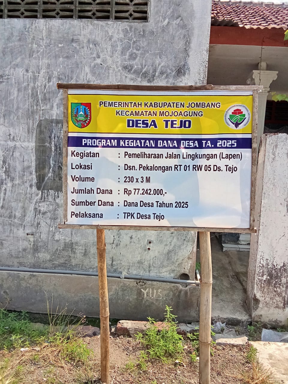 Indobangkit.com JOMBANG, – Dalam sebuah investigasi terbaru, media kami mengungkap dugaan penyimpangan dana desa 2025 dengan anggaran senilai Rp. 77.242.000 , Volume 230 x 3 M yang diduga dilakukan oleh oknum Kades Tejo Kecamatan Mojoagung, Kabupaten Jombang. Dugaan ini berfokus pada proyek pembangunan Pemeliharaan Jalan Lingkungan (Lapen) yang dilaporkan terealisasi cuman diduga tidak sesuai RAB.(17/7/2025)