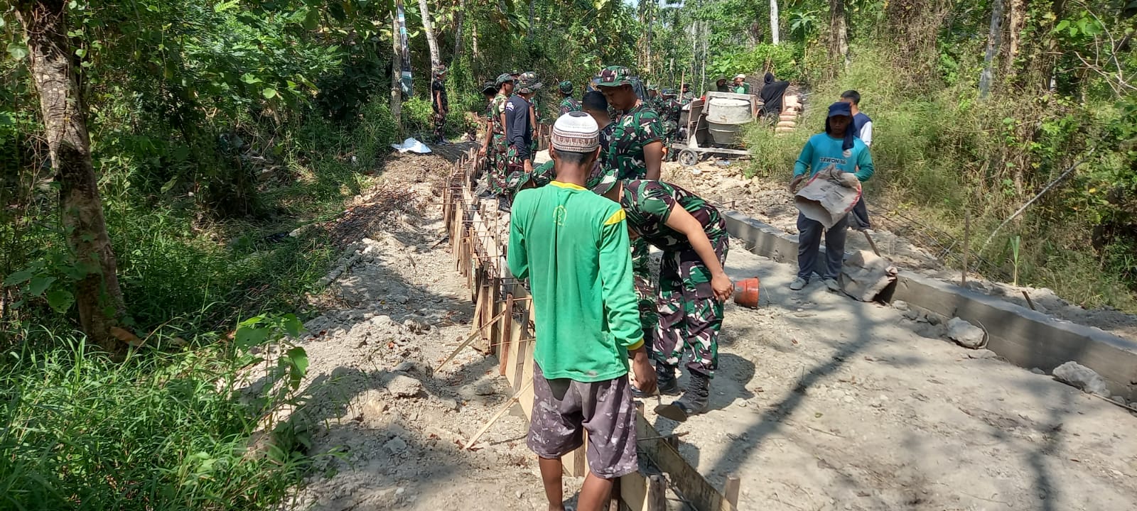 Dengan mengusung semangat gotong royong, Babinsa Koramil 17/ Wonosalam Koptu Ican A.F ,bersama warga Bahu membahu melaksanakan Pengecoran jalan usaha tani, di Dusun Kromong RT 01,RW 01 Desa Kromong Kecamatan Ngusikan Kabupaten Jombang,Sabtu (26/07/2025)