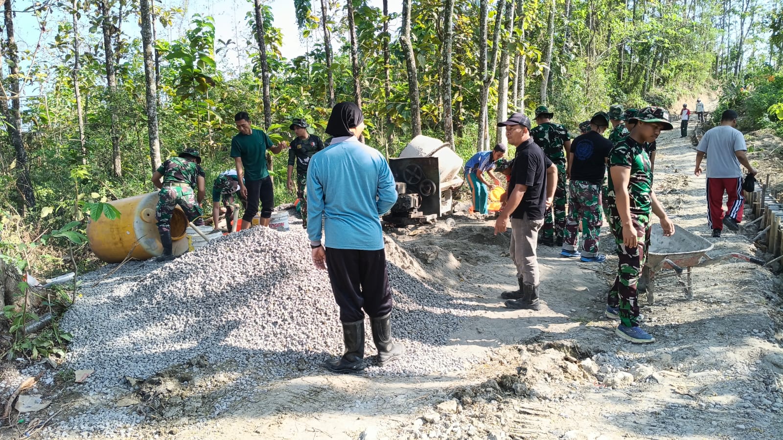Indobangkit.com Jombang – Selasa,(05/08/25) Personil Satuan Tugas (Satgas) TNI Manunggal Membangun Desa (TMMD) ke 125 Th 2025 Kodim 0814/Jombang di Desa Kromong, Kecamatan Ngusikan, Kabupaten Jombang melanjutkan pembangunan jalan desa.