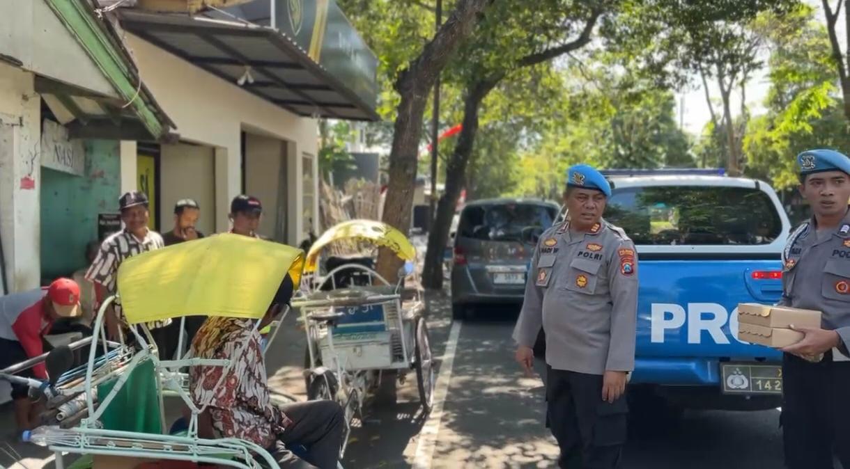 “Alhamdulillah, dapat makan gratis dari pak Polisi,” ujar Sutik (60) tukang becak pangkalan.