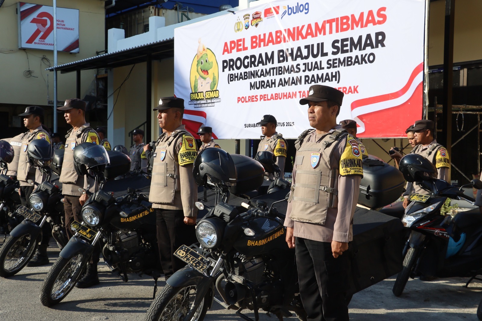 Peluncuran program ini ditandai dengan apel yang dipimpin langsung oleh Kapolres Pelabuhan Tanjung Perak, AKBP Wahyu Hidayat pada hari Selasa (12/8/25).