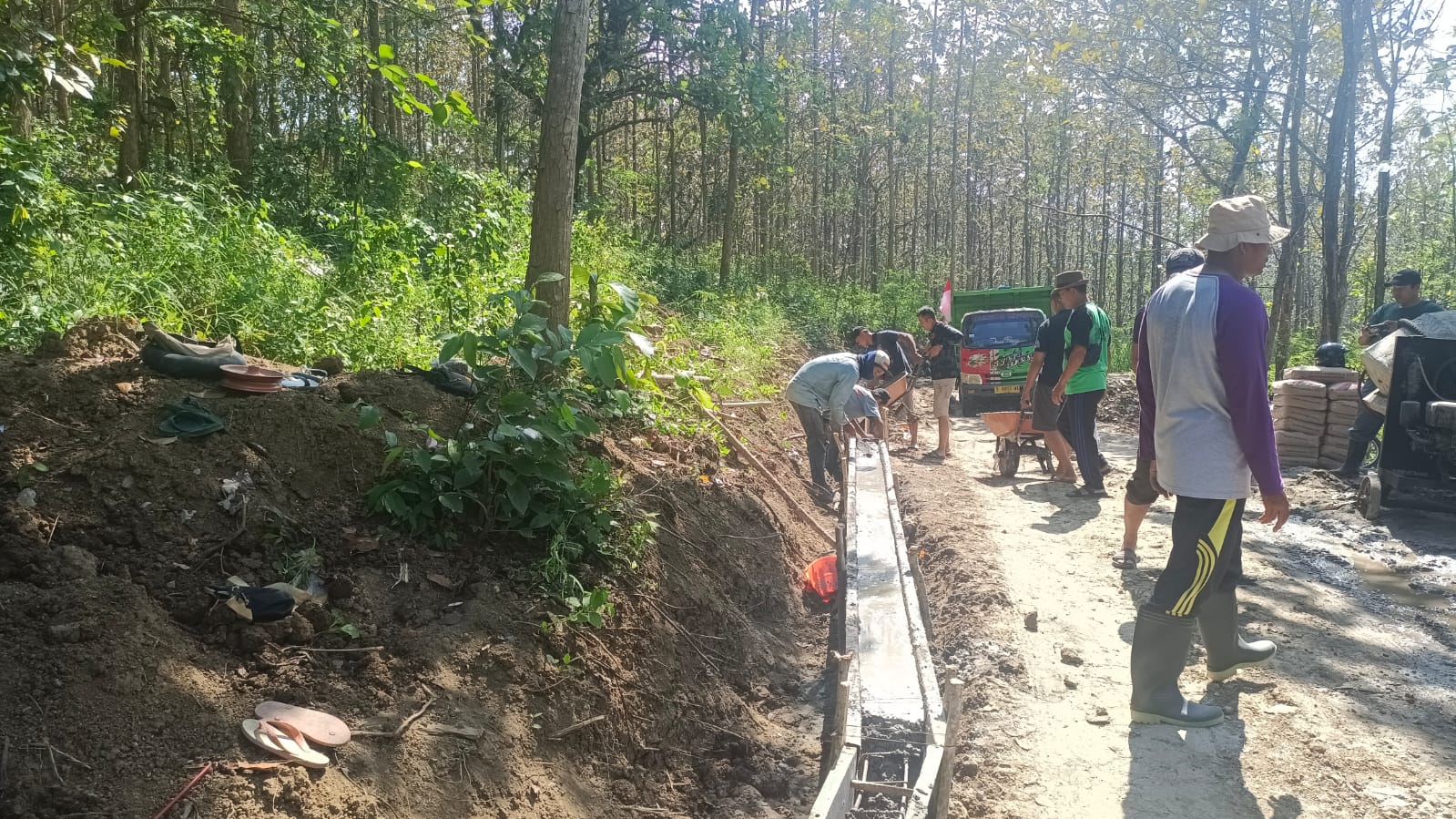 Pantauan di lapangan, prajurit TNI bersama masyarakat setempat bergotong royong melakukan pengecoran jalan. Proses dimulai dari pengadukan semen menggunakan molen, dilanjutkan dengan pemasangan adukan pada rangka jalan yang telah dipersiapkan. Warga terlihat antusias membantu, mulai dari menyiapkan air, mengangkut material, hingga merapikan hasil pengecoran.