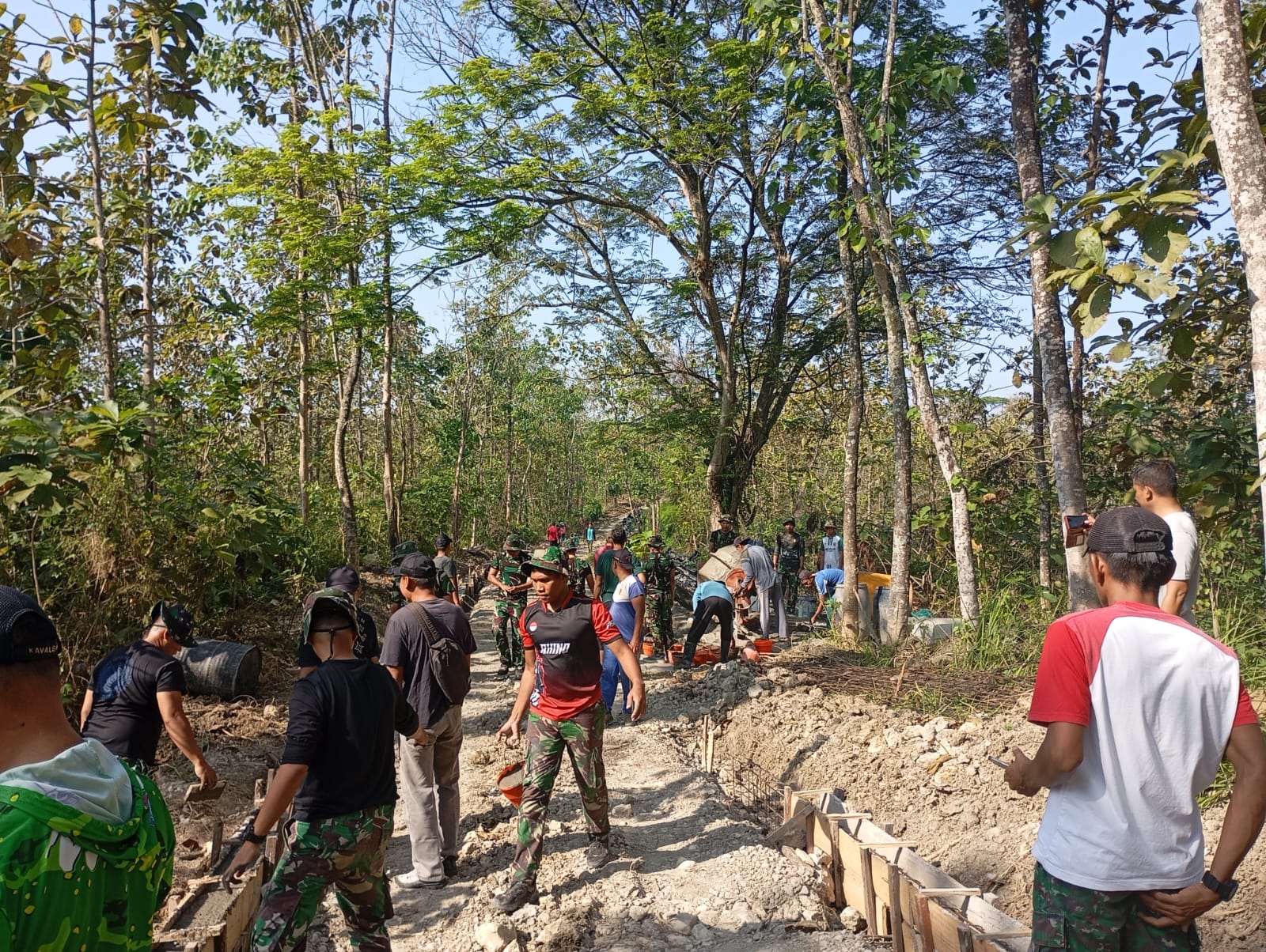 Meski medan curam dan cuaca yang tak menentu, Pasiter Kodim 0814/Jombang, Kapten inf Tatok Budiono selalu mendorong semangat para anggotanya dan menjaga kesehatan selama pelaksanaan TMMD 125 ini.