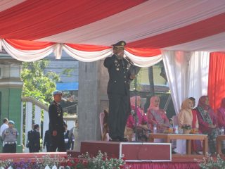 Dengan mengangkat tema “Dengan Semangat Juang Polri untuk Masyarakat Menuju Indonesia Maju”, upacara dimulai dengan penghormatan pasukan, laporan komandan upacara, pembacaan sejarah singkat Polri, hingga pembacaan teks Proklamasi Polisi oleh Irjen Pol Ramdani Hidayat selaku inspektur upacara.