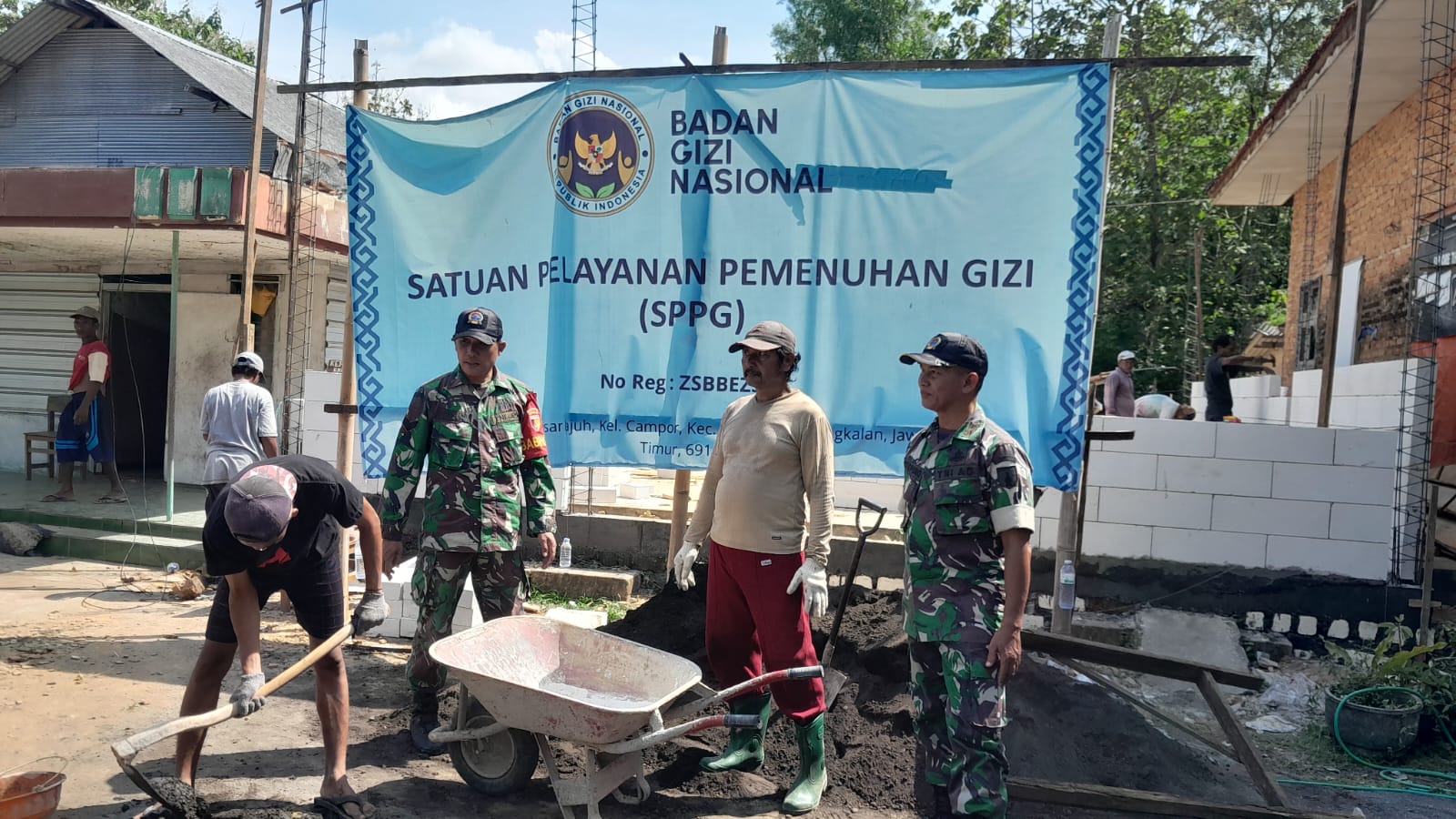 Indobangkit.com Bangkalan – Koramil 0829-15/Geger yang dipimpin langsung oleh Danramil Lettu Inf Supono bersama anggota melaksanakan kegiatan monitoring pembangunan Satuan Pelayanan Pemenuhan Gizi MBG oleh Yayasan Nurul Hidayah di Desa Campor, Kecamatan Geger, Kabupaten Bangkalan, Selasa (16/9/25).