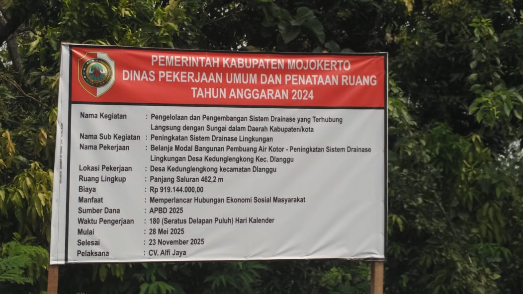 Salah satu contoh nyata dari upaya peningkatan infrastruktur adalah pembangunan drainase di Desa Kedunglengkong Kecamatan Dlanggu.