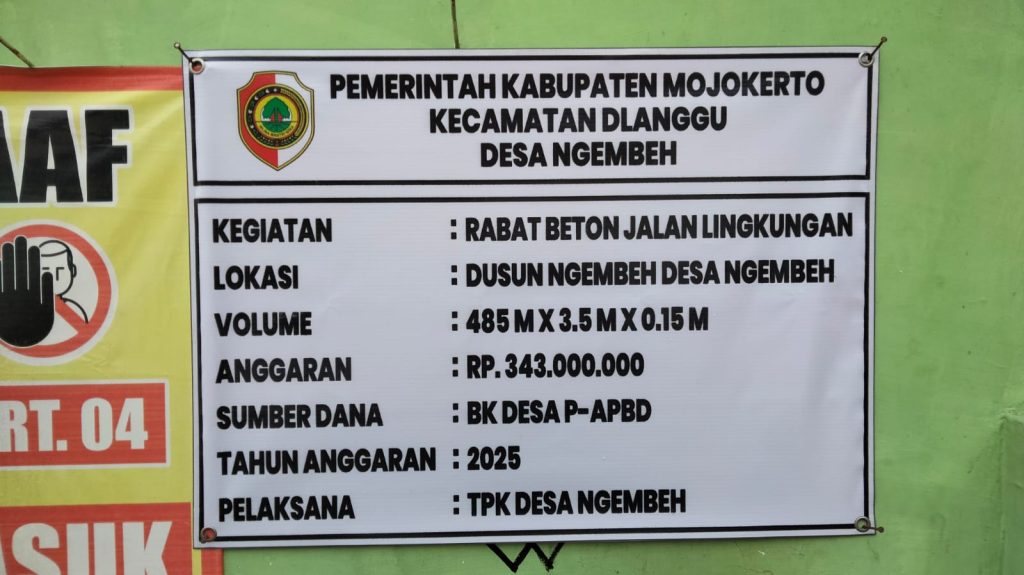 Indobangkit.com MOJOKERTO – Minggu 7 Desember 2025. Pemerintah Kabupaten Mojokerto terus memperkuat infrastruktur di tingkat desa. Hal ini terlihat dari rampungnya pelaksanaan kegiatan Pengecoran Beton Jalan Lingkungan di Dusun Ngembeh, Desa Ngembeh, Kecamatan Dlanggu.