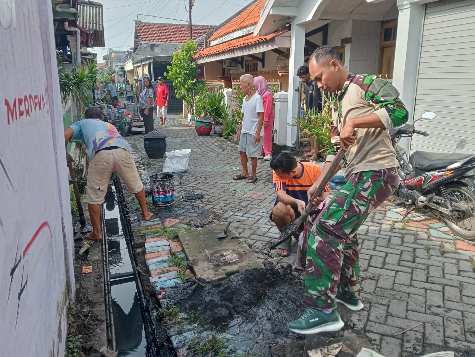 Seluruh peserta kerja bakti berkumpul di Pos Kamling RT 01, Jalan Perintis I, pada pukul 07.00 WIB untuk menerima instruksi terperinci dan pembagian sektor pembersihan. Tepat pukul 07.30 WIB, operasi pembersihan dimulai. Anggota TNI bersama-sama warga bahu-membahu mengevakuasi endapan lumpur pekat, sampah-sampah non-organik, dan berbagai material penyumbat lainnya dari dalam saluran air. Fokus utama kegiatan ini adalah memastikan arus air dapat mengalir dengan lancar tanpa hambatan, sehingga infrastruktur drainase berfungsi optimal.