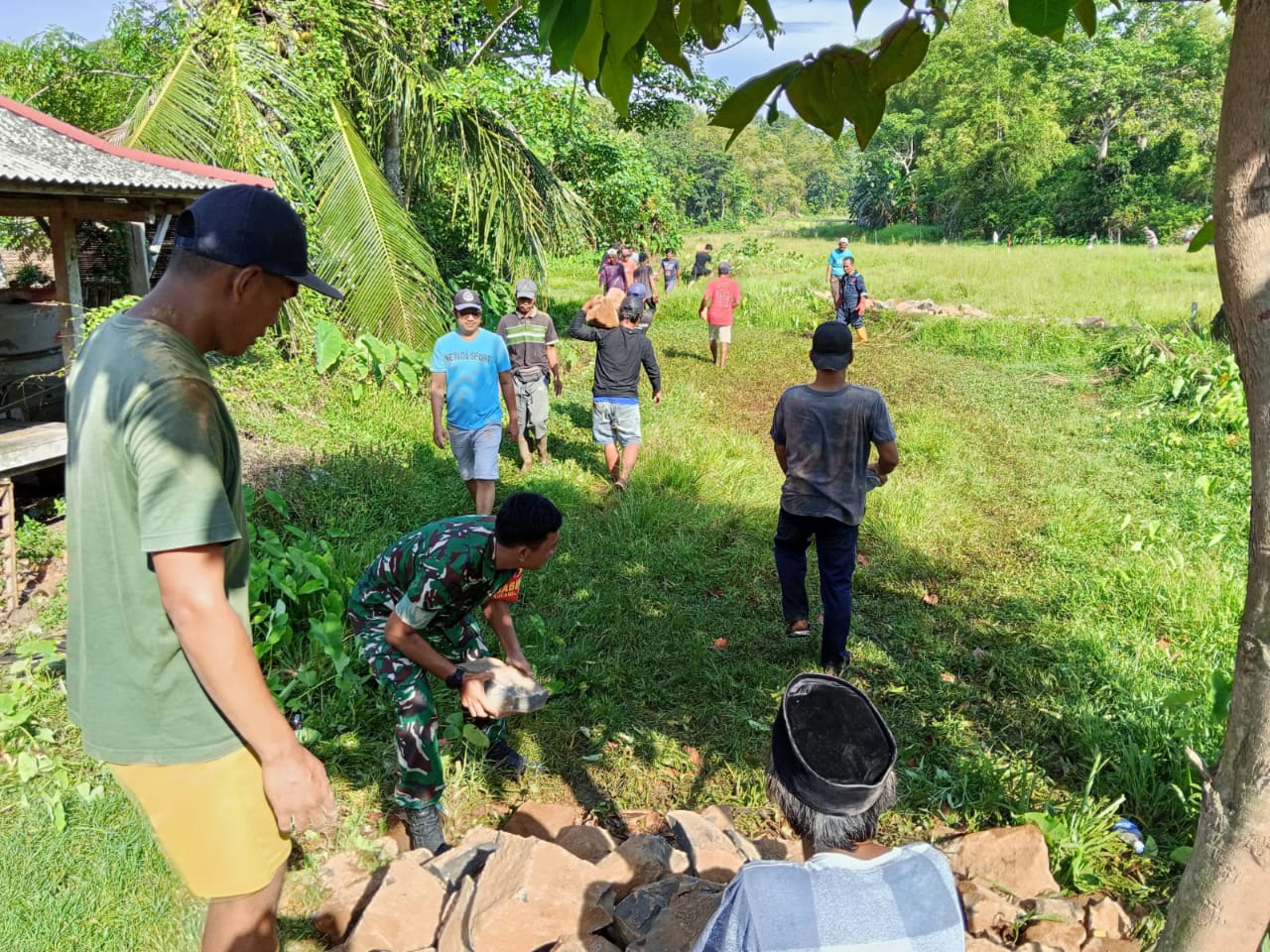 Kegiatan gotong royong ini melibatkan Babinsa bersama masyarakat setempat dengan sasaran pembangunan saluran irigasi guna menunjang kebutuhan air bagi lahan pertanian warga. Pembangunan irigasi tersebut diharapkan mampu meningkatkan hasil pertanian serta mendukung ketahanan pangan di wilayah.
