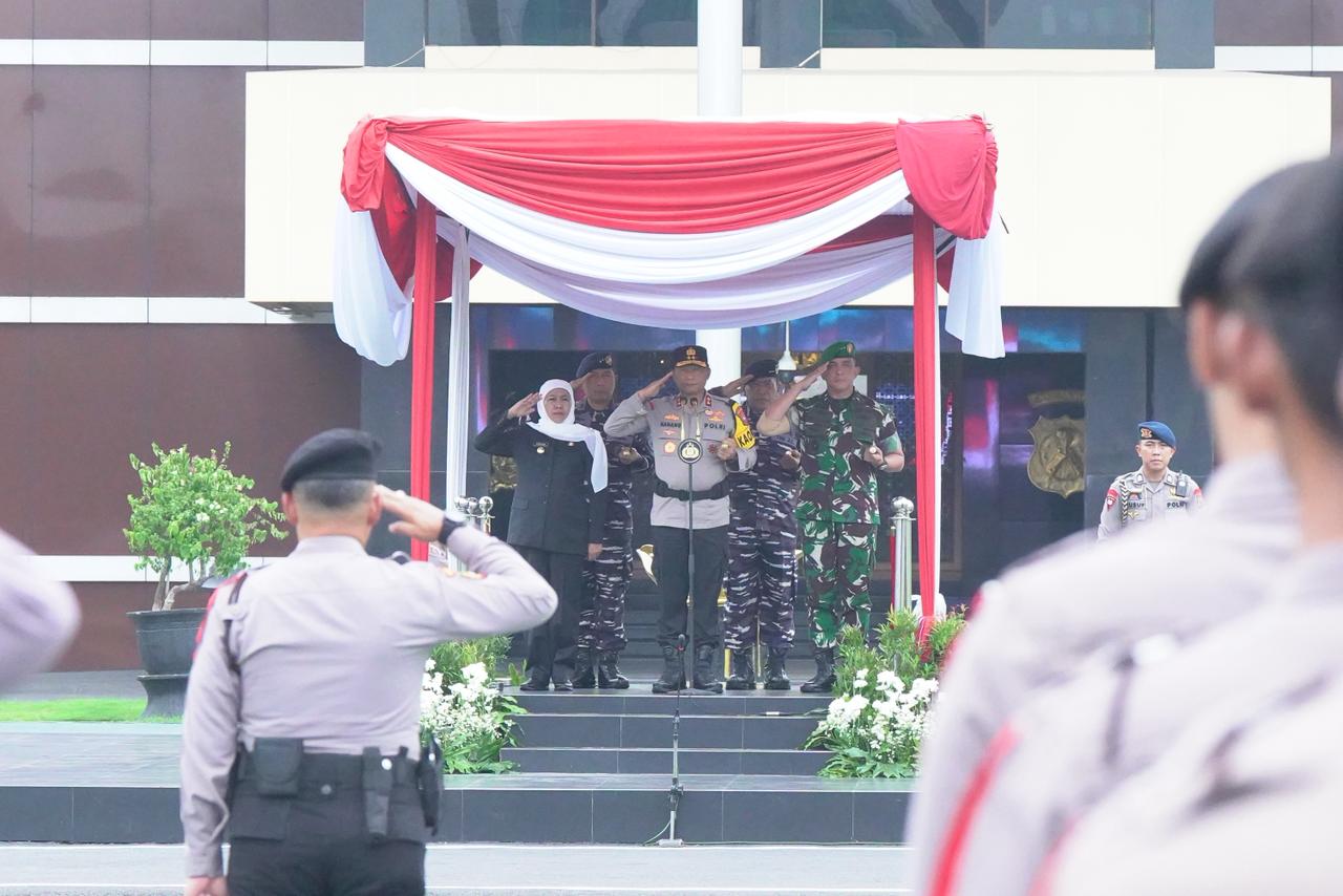 Apel yang dipimpin langsung Kapolda Jatim Irjen Pol Nanang Avianto tersebut menjadi momentum pengecekan akhir kesiapan personel dan sarana prasarana pengamanan Nataru. Pangdam V/Brawijaya hadir bersama Forkopimda Jatim serta sejumlah pejabat TNI-Polri dan instansi terkait.