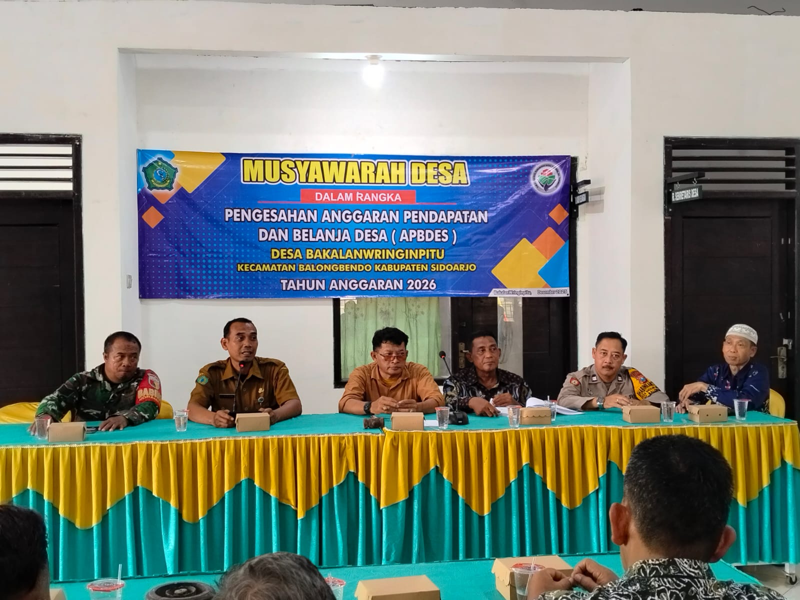 Hadir dalam kegiatan ini antara lain Camat Balongbendo Bapak Ahmad Farhan Jazuli, S.STP., M.M., Kepala Desa Bakalan Wringinpitu Bapak Nanang H., Ketua BPD Desa Bakalan Wringinpitu Bapak Suprio beserta anggota, Babinsa Serma Suwardi, Bhabinkamtibmas Polsek Balongbendo Aiptu Imam G., Sekretaris Desa Bapak Saiful beserta perangkat desa, para Ketua RT dan RW, Ibu-ibu PKK, serta tokoh agama dan tokoh masyarakat Desa Bakalan Wringinpitu.