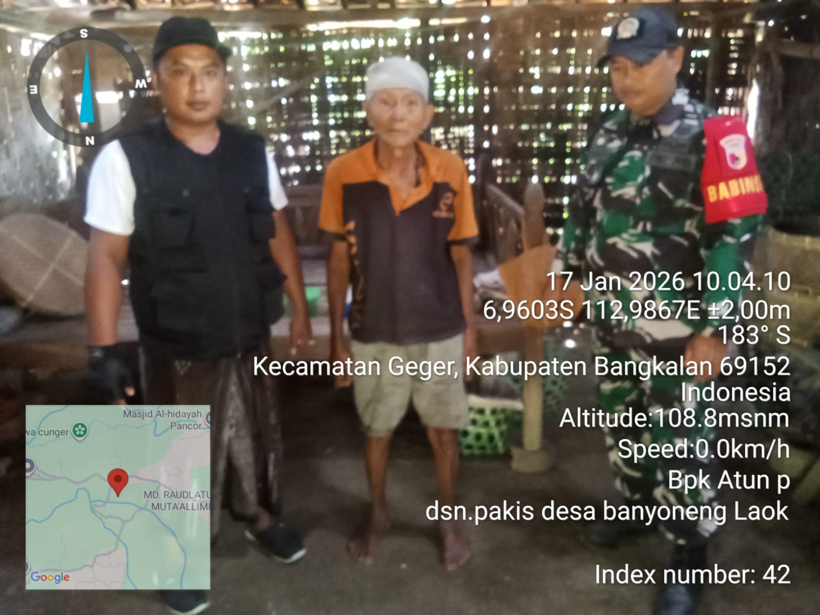Indobangkit.com Bangkalan – Koramil 0829-15/Geger melalui Babinsa Serka Rosihanto melaksanakan kegiatan survei dan pendataan calon penerima program Rumah Tidak Layak Huni (RTLH) di Desa Banyoneng Laok, Kecamatan Geger, Kabupaten Bangkalan, pada Sabtu (17/1/26). Kegiatan ini merupakan bentuk kepedulian TNI AD dalam mendukung program pemerintah untuk meningkatkan kesejahteraan masyarakat, khususnya di bidang perumahan.