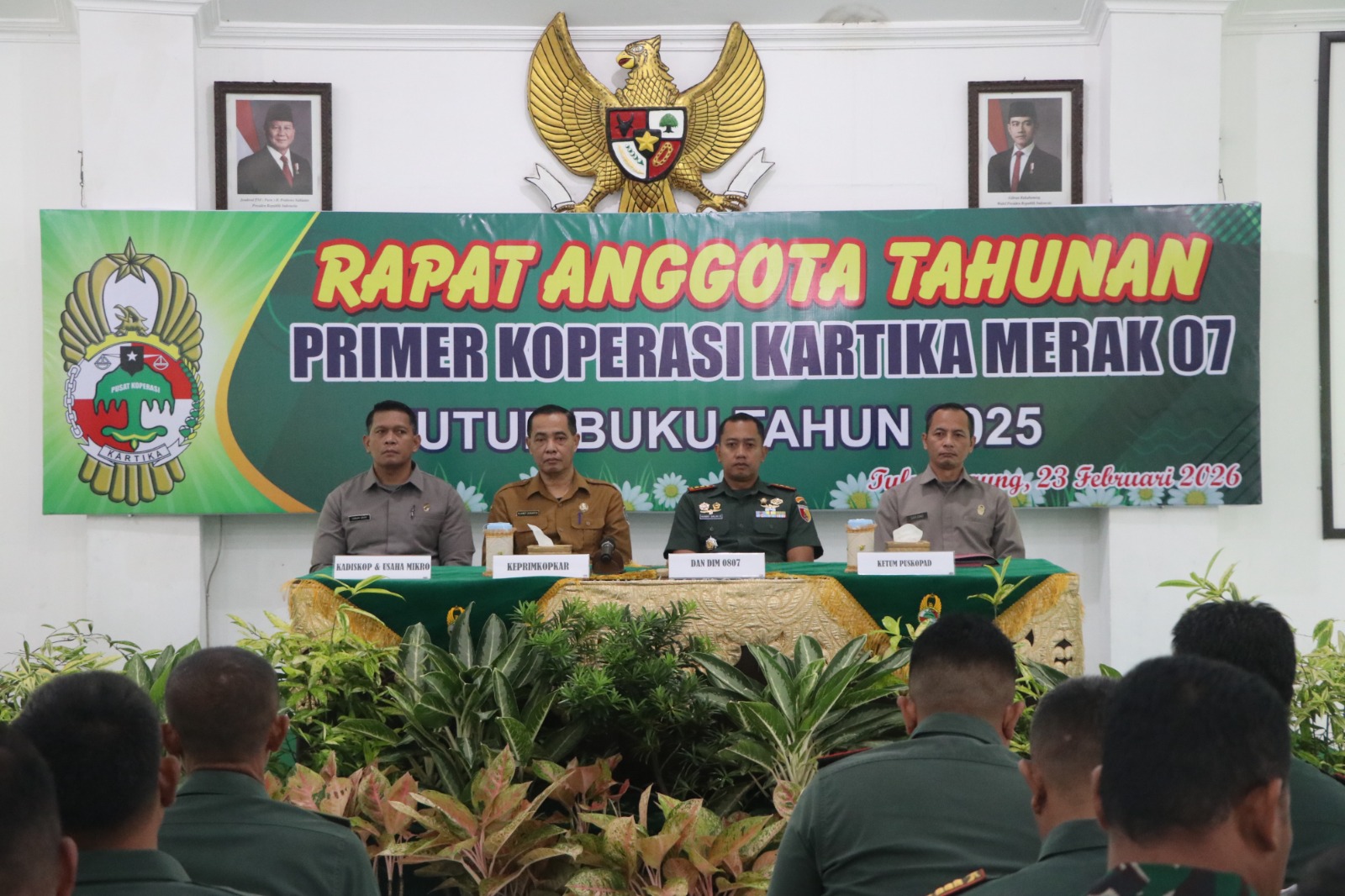 Indobangkit.com Tulungagung – Kodim 0807/Tulungagung menggelar Rapat Anggota Tahunan (RAT) Primkop Kartika Merak 07 Tutup Buku Tahun 2025 di Aula Pandu Sakti Makodim 0807/Tulungagung, Jl. Jaksa Agung Suprapto No. 17, Kelurahan Kampungdalem, Kecamatan Tulungagung, Kabupaten Tulungagung, Jawa Timur, Senin (23/2/2026).