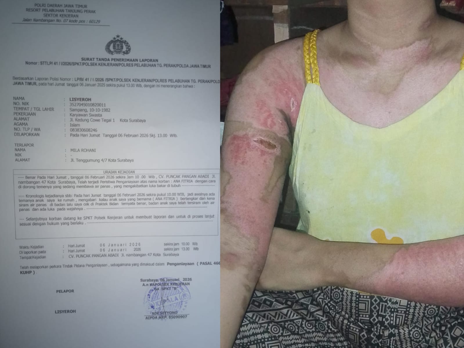 Masih lanjut kata Lisyeroh, Kronologis kejadian pada hari Jumat (06/01/2026) sekitar jam 10.00 Wib, kejadian yang dilakukan pelaku (Mila Rohani) dengan cara diduga menyiram Air Panas, dan sehingga mengalami luka bakar serius (kulit tubuh melepuh merah).