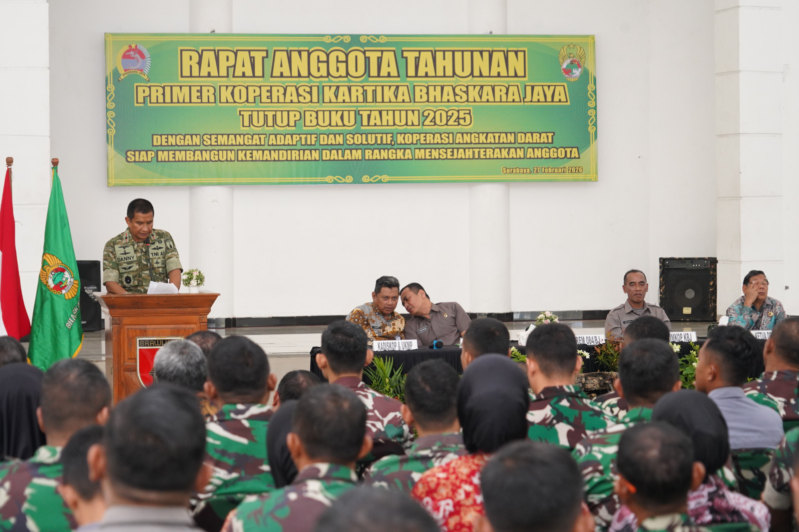 Indobangkit.com SURABAYA – Korem 084/Bhaskara Jaya menyelenggarakan Rapat Anggota Tahunan (RAT) Primer Koperasi Kartika Bhaskara Jaya untuk menutup buku Tahun 2025 di Aula Makorem 084/Bhaskara Jaya, Jumat (27/2/2026).
