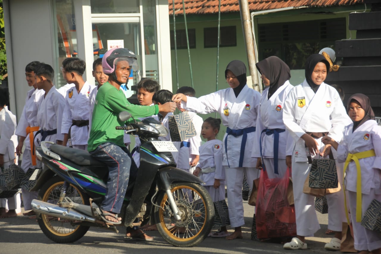 Anak-anak yang mengenakan seragam karate tampak berbaris tertib di tepi jalan sambil membawa paket makanan dan minuman berbuka puasa. Dengan antusias, mereka menyapa pengendara roda dua, roda empat, hingga pejalan kaki yang melintas di depan markas Kodim. Kehadiran mereka menarik perhatian masyarakat karena selain menunjukkan semangat berbagi, juga menghadirkan suasana hangat menjelang waktu berbuka.