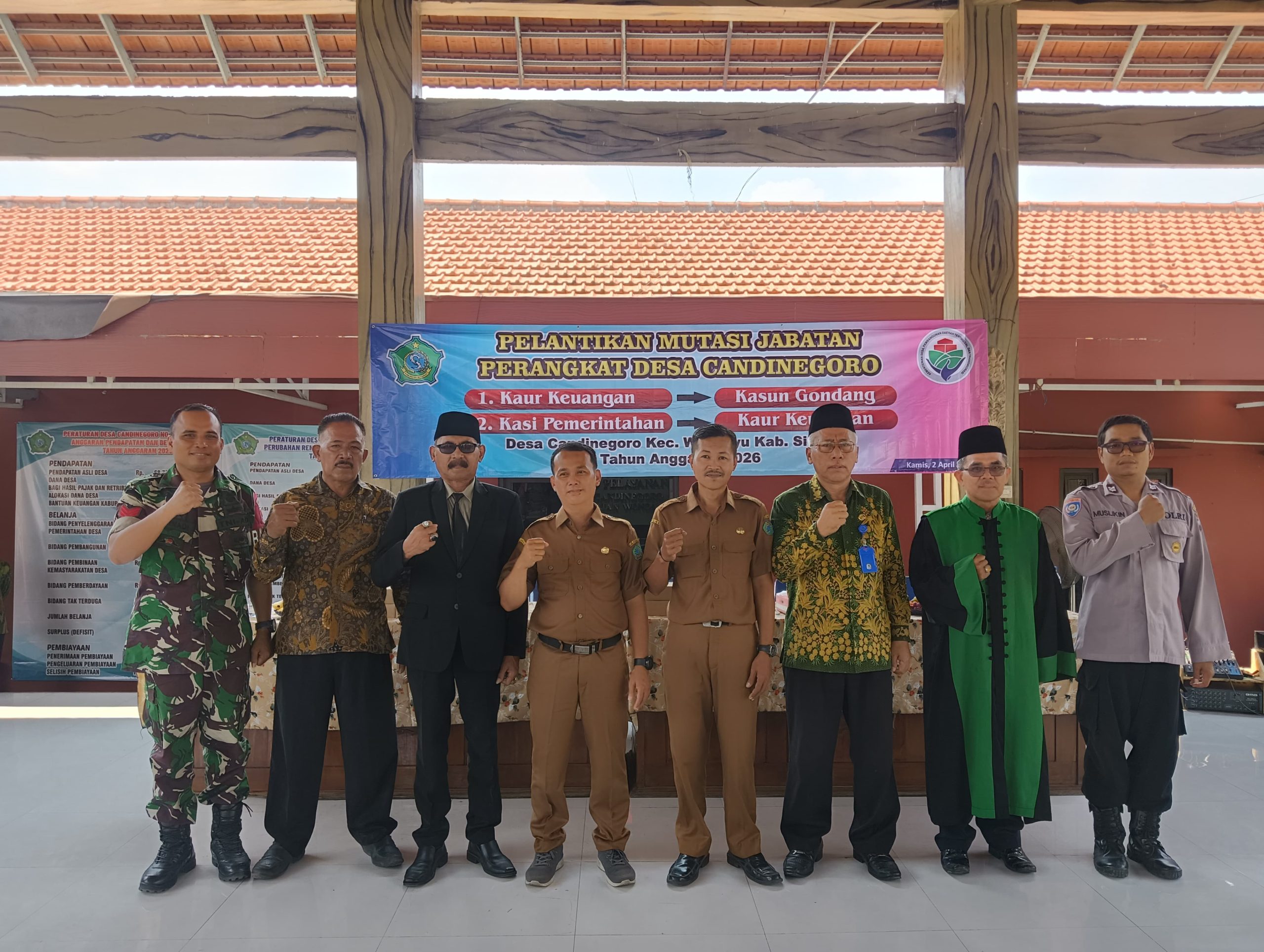 Indobangkit.com Sidoarjo – Dalam upaya memperkuat tata kelola pemerintahan desa serta meningkatkan kualitas pelayanan kepada masyarakat, Babinsa Desa Candinegoro Koramil 0816/13 Wonoayu, Kopka Purnadi, menghadiri kegiatan pelantikan Kepala Dusun (Kasun) dan mutasi jabatan perangkat desa yang digelar pada Kamis, 02 April 2026, bertempat di Balai Desa Candinegoro, Kecamatan Wonoayu, Kabupaten Sidoarjo.