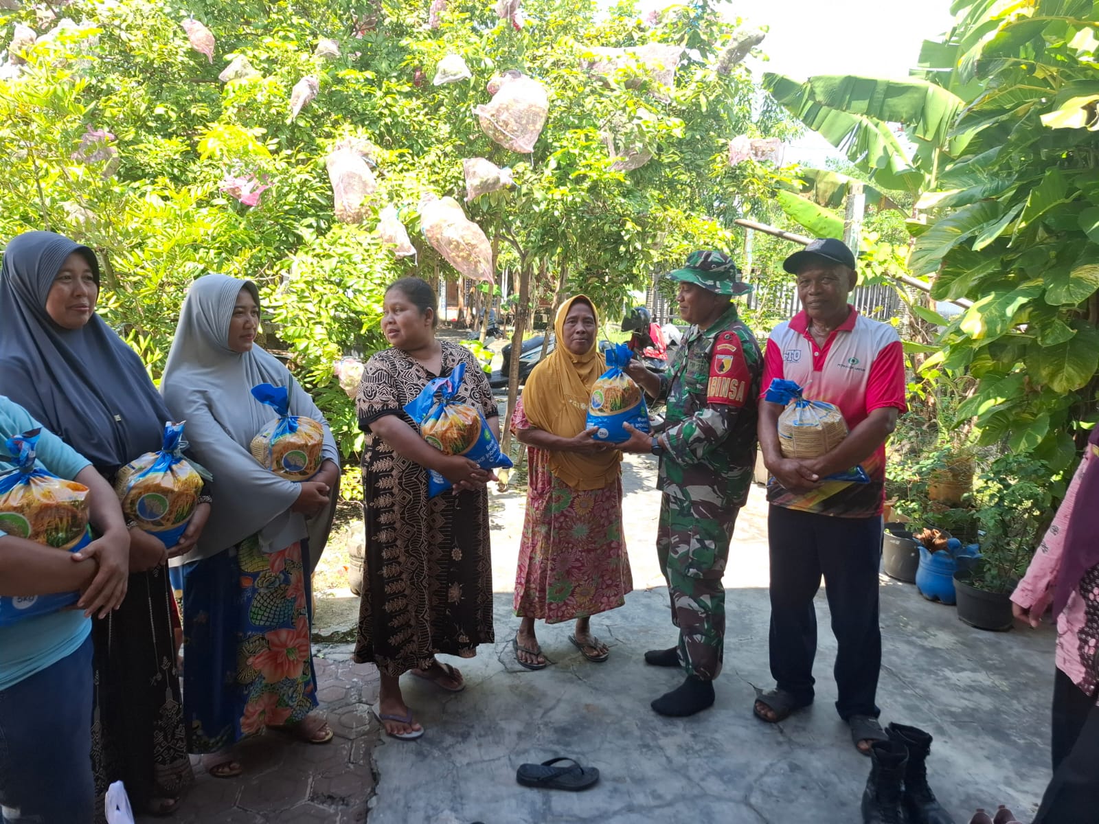 Acara inti ditandai dengan penyerahan bibit padi secara simbolis. Serka Purnomo tampak menyerahkan kantong benih kepada perwakilan petani dengan sapaan akrab yang memecah kekakuan. Benih ini diharapkan menjadi titik awal musim tanam yang lebih produktif dan membawa kesejahteraan bagi keluarga petani.