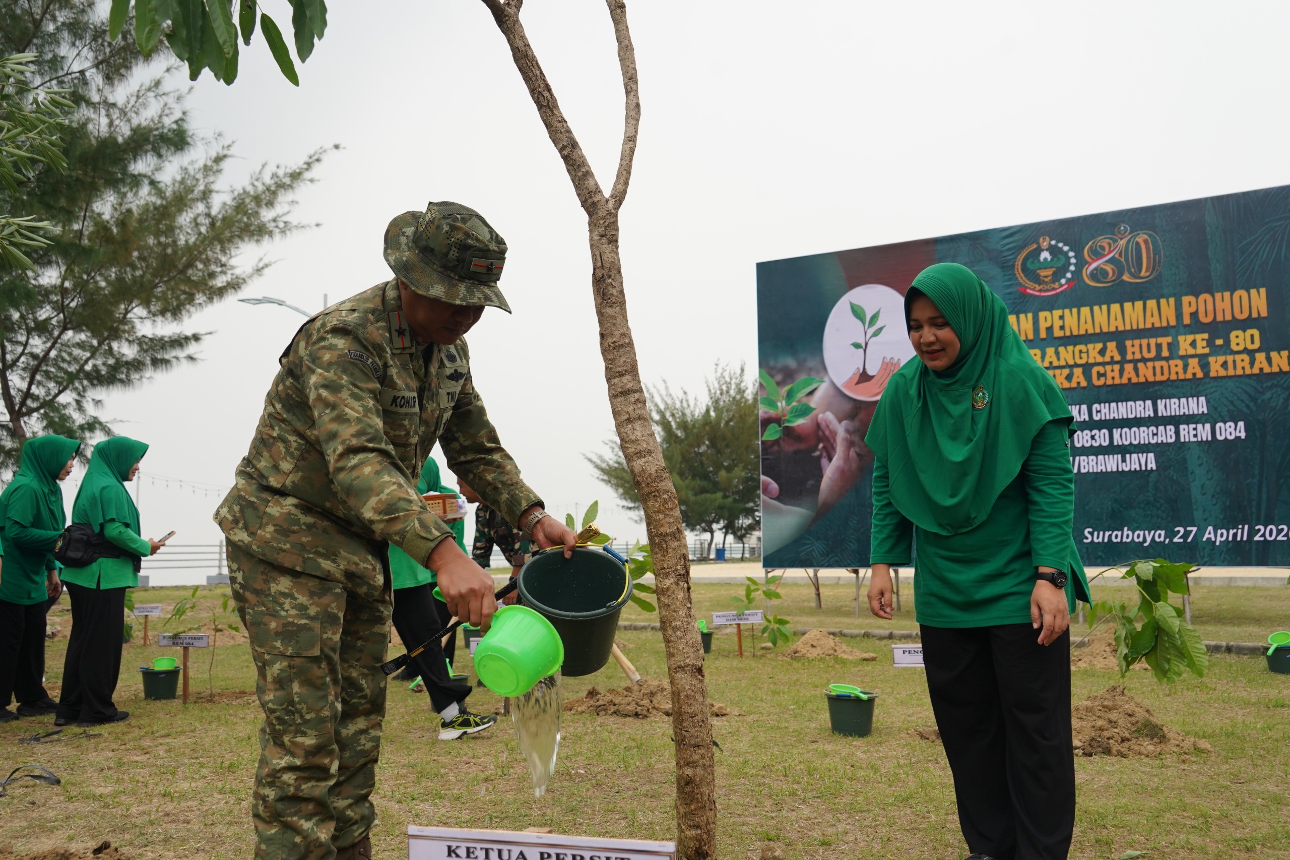 Indobangkit.com Surabaya — Semilir angin laut Pantai Kenjeran menjadi saksi langkah penuh makna yang dihadirkan Danrem 084/Bhaskara Jaya, Brigjen TNI Kohir di dampingi Ketua Persit Kartika Candra Kirana (KCK) Koorcab Rem PD V Brawijay Ny.Nilam Kohir dalam kegiatan Gerakan Penanaman Pohon memperingati HUT Persit Kartika Chandra Kirana ke-80, Senin (27/04/2026).